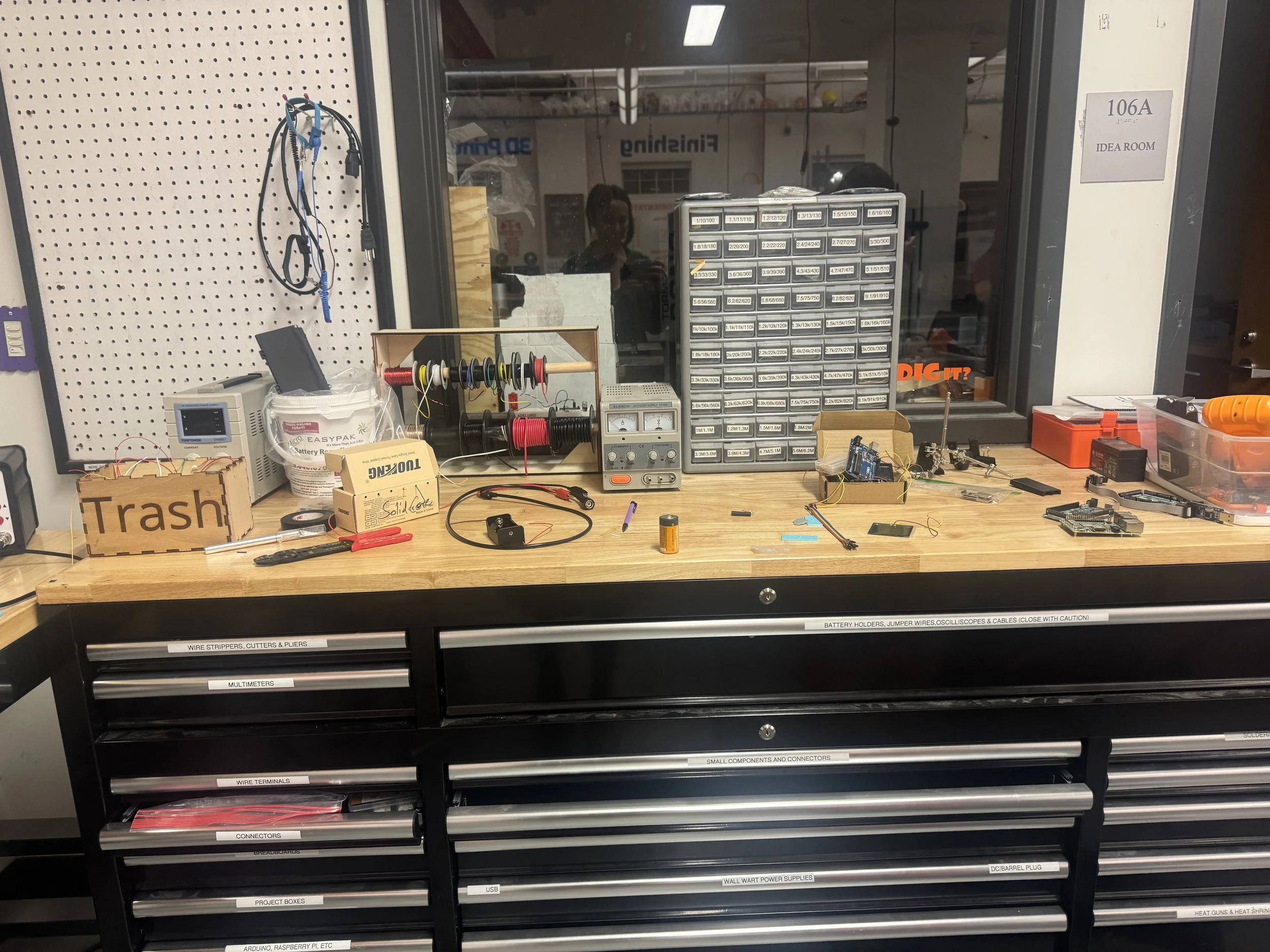 Antistatic wrist straps are available in the workbench drawers if needed. These can be used to ground you when working on sensitive electronic equipment. They prevent the buildup of static electricity on your body, which can cause electrostatic discharge.
