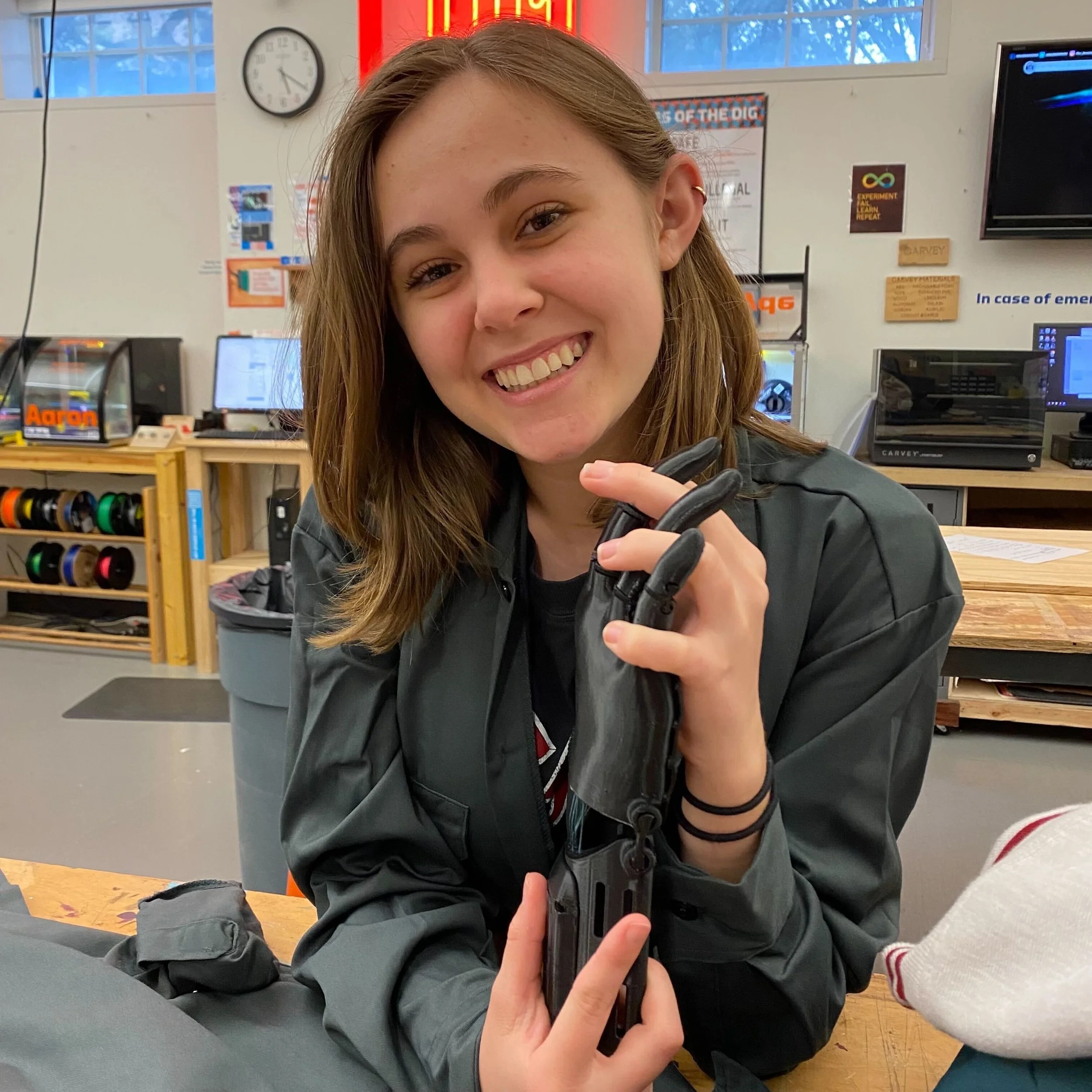 Quinn is a freshman studying Biochemistry. Quinn's specialty is creating whatever weirdly specific item they or their friends think of. You can most often find them making things on the 3D printers, creating new designs to test on the vinyl cutter, or trying to convince a friend to come to the DIG more often.